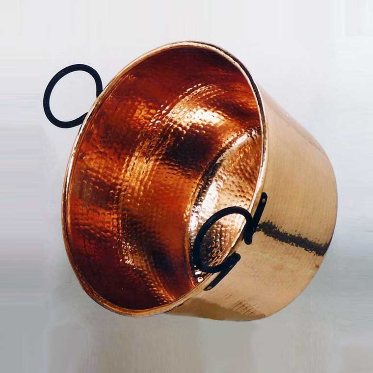 Olla Caldera de Cobre Rebatido para hacer Garrapiñadas en chapa de cobre de 1 mm. Ideal para la elaboración de productos garrapiñados como almendras garrapiñadas, cacahuetes (mani), avellanas, nueces, pipas y todo tipo de frutos secos caramelizados.